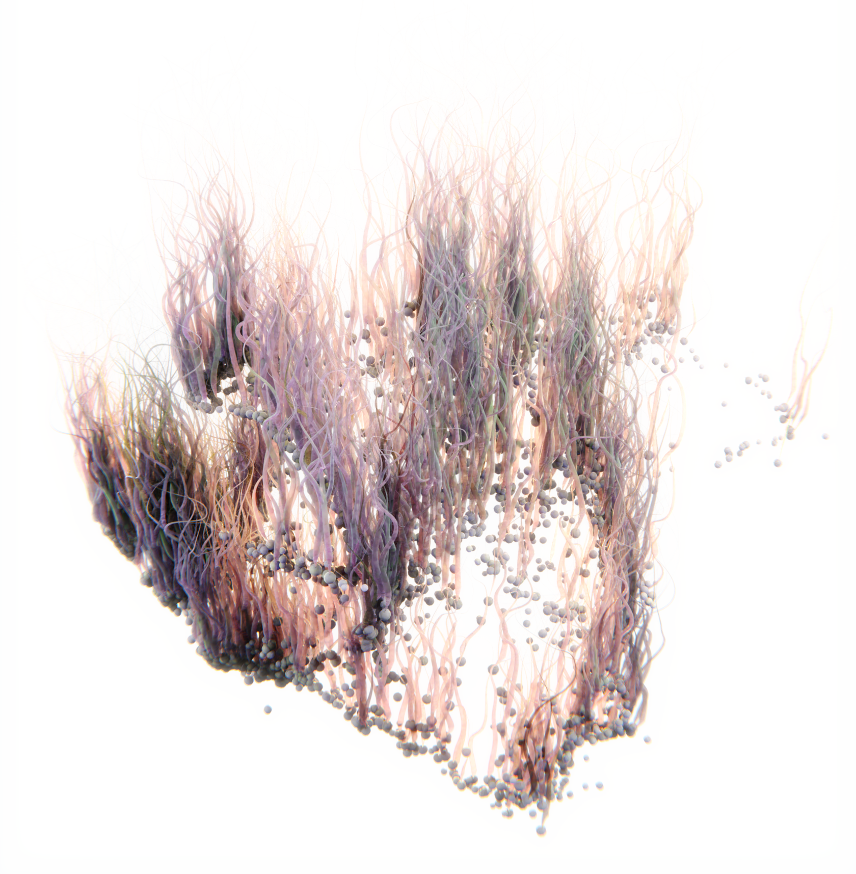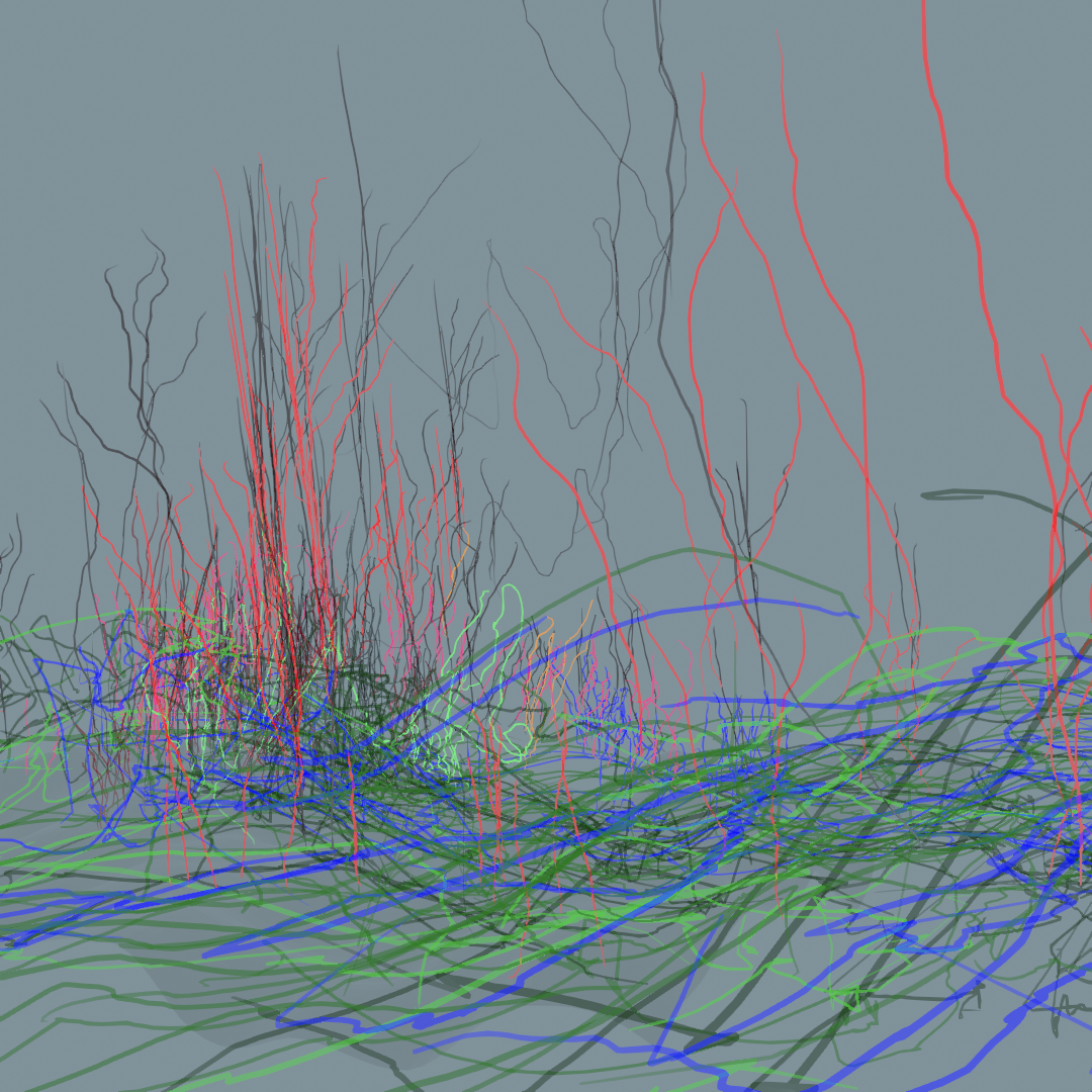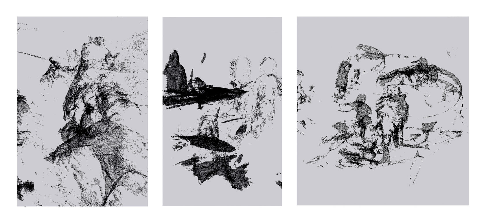 The other image is a still from a video of a scan of landscape in the Peak District. It’s the ground covered in heather. There is something in the eye scan that reminded me of it, the layering, movement and fragility. I liked the shift in scale again and thinking about the scanning process at these very different scales and for such very different purposes.